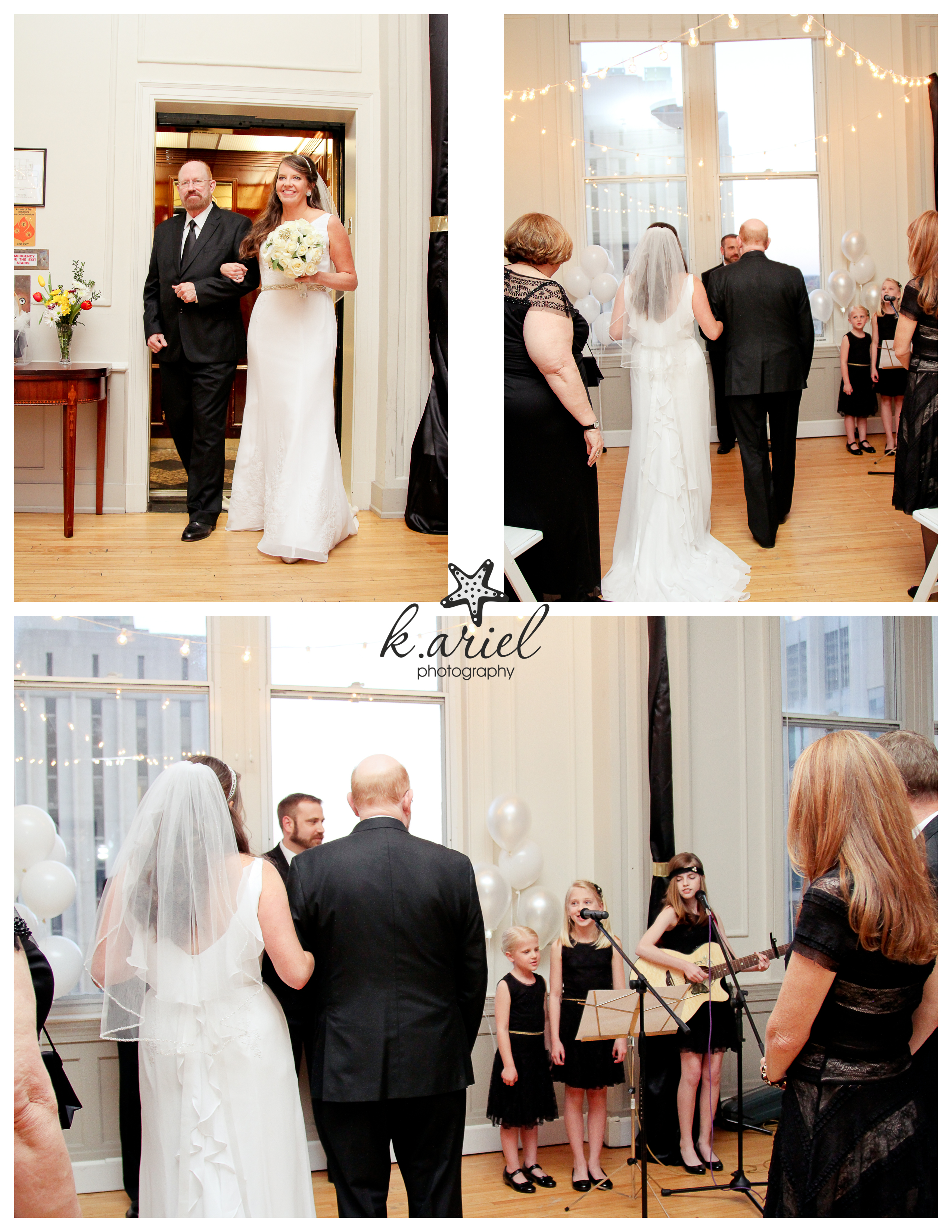 Once the ceremony was beginning, their three daughters rode the elevator from the 11th floor to the 12th floor each holding a bunch of balloons. They walked down the aisle, placed them at the altar then then took their place at the mics. Jackee’s daughter JoJo played the guitar and then her, Regan and Riley all sang an amazing acoustic version of “Swept Away” by The Avett Brothers while Jackee walked down the aisle. The ceremony was very sweet and intimate, the pictures afterwards were so much fun to do and the reception was a blast! I had to remind myself not to get carried away with dancing along while trying to take pictures!