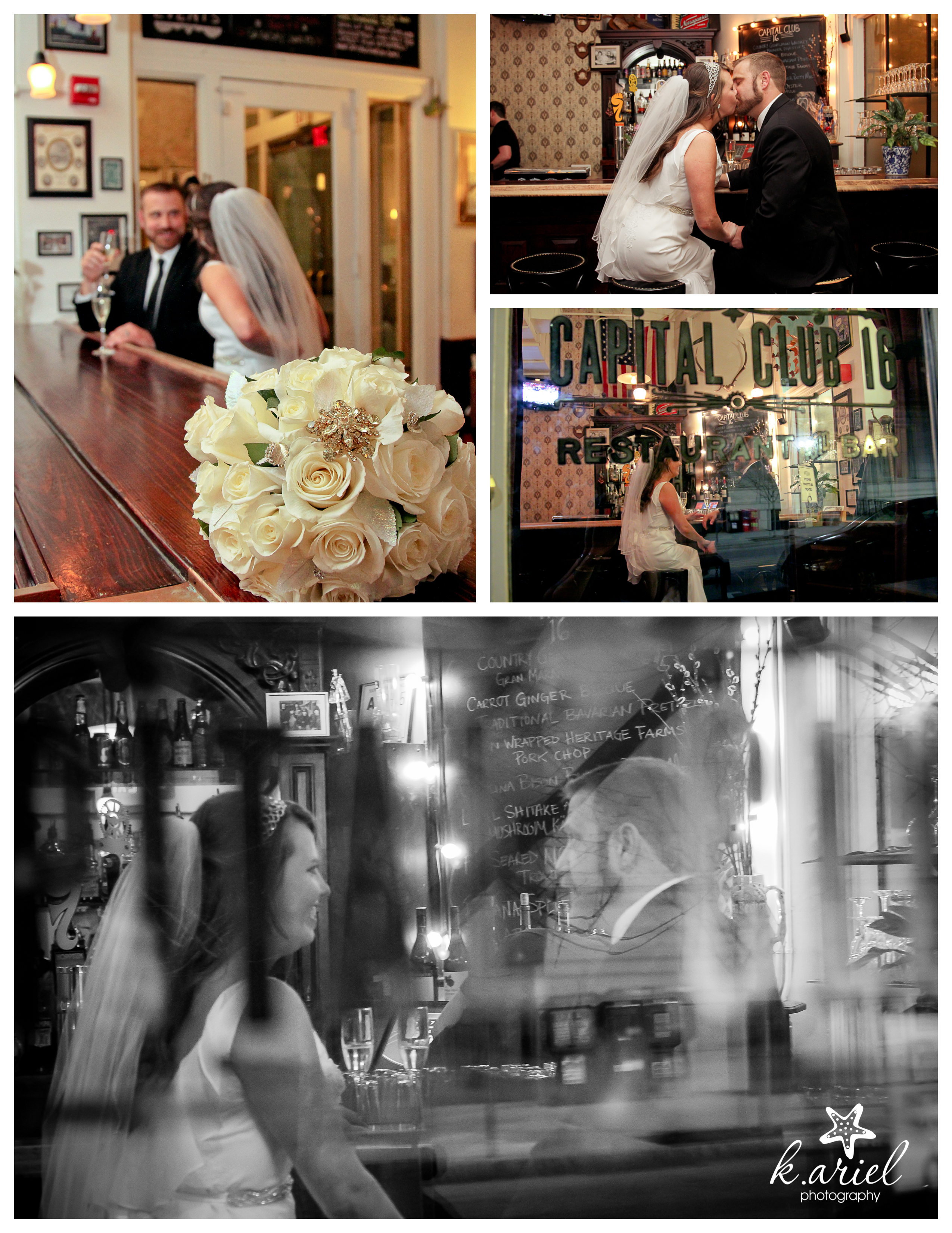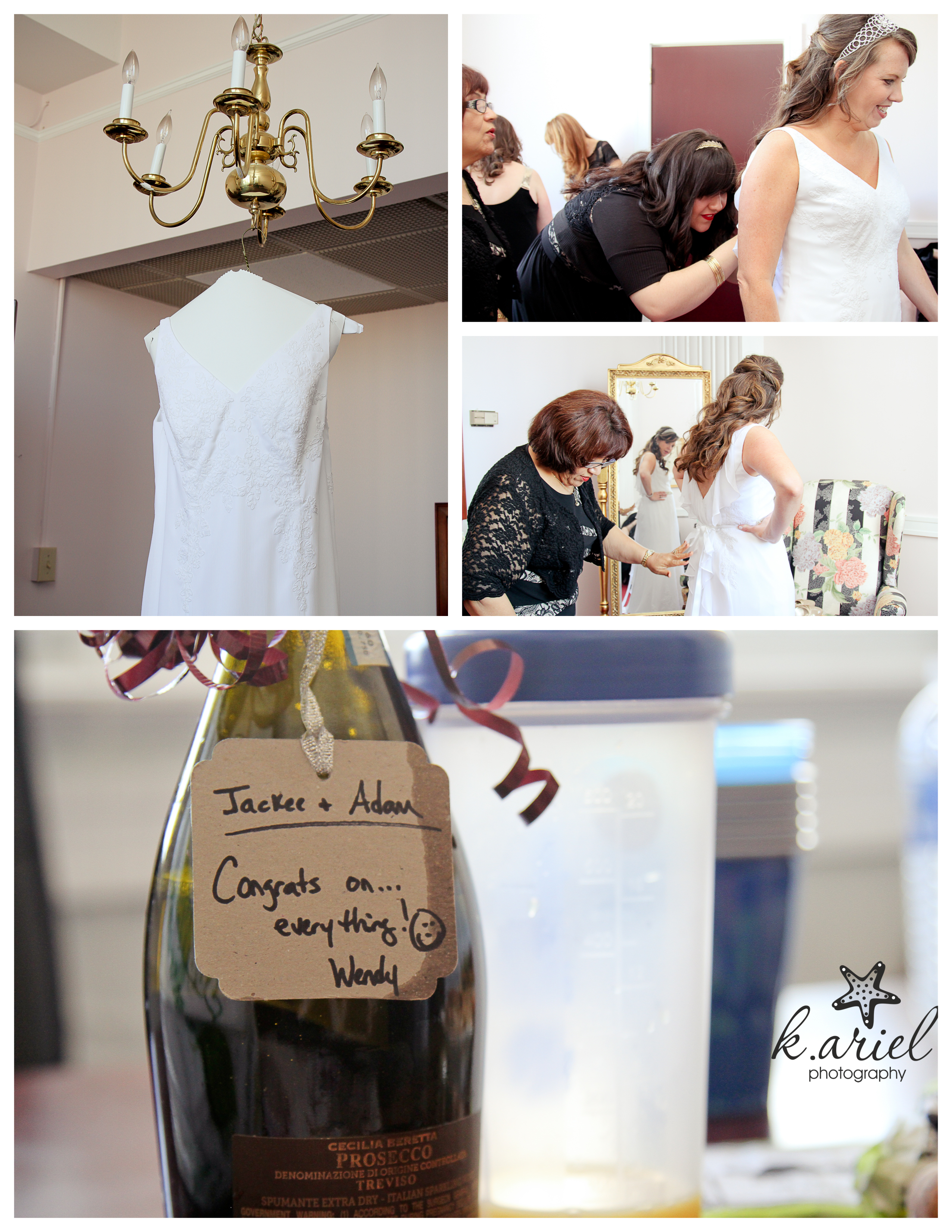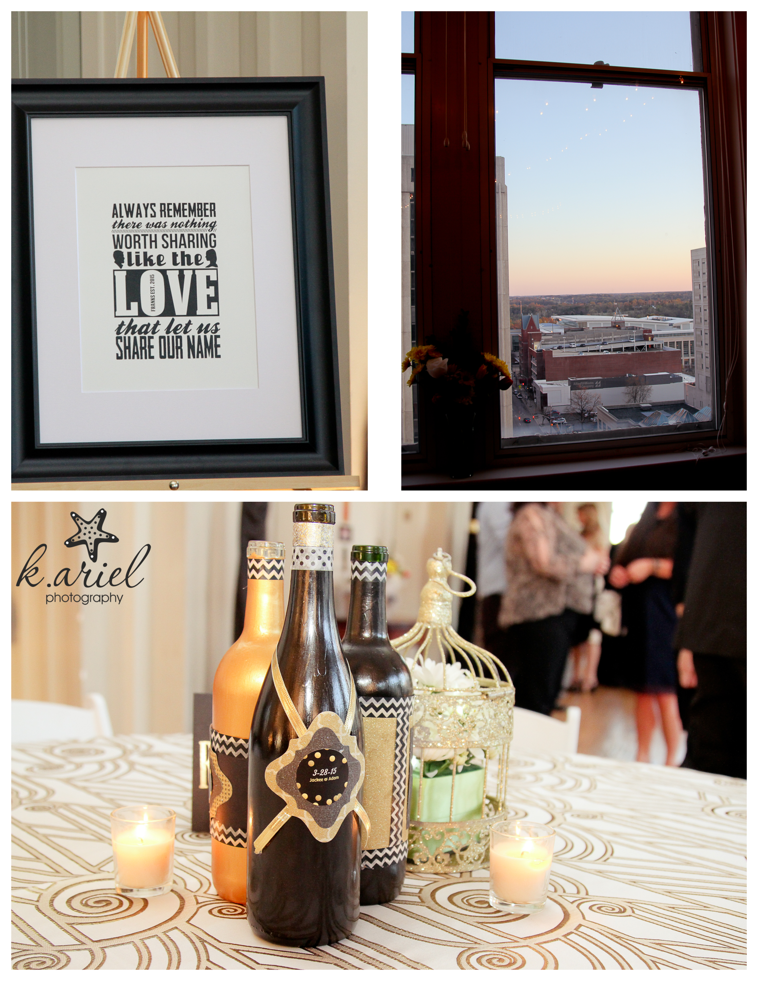 Over to the venue I went and headed to the 11th floor where everyone was getting ready. The Capital Club building used to be a gentleman’s club way back in the day, I’m guessing the 1920s but is now a restaurant on the first floor (where Adam and Jackee met) offices in the middle floors and the 11th and 12th floors are for events. It didn’t take long for the girls to be ready, surprisingly. We took her “getting ready” pictures and since she had so much time left over, she just took her dress off again and waited in her robe until time got closer! How is that possible? I’m almost jealous over that! Adam, on the other hand was a little more rushed. He was in charge of blowing up ALL of the balloons that were needed for the night.