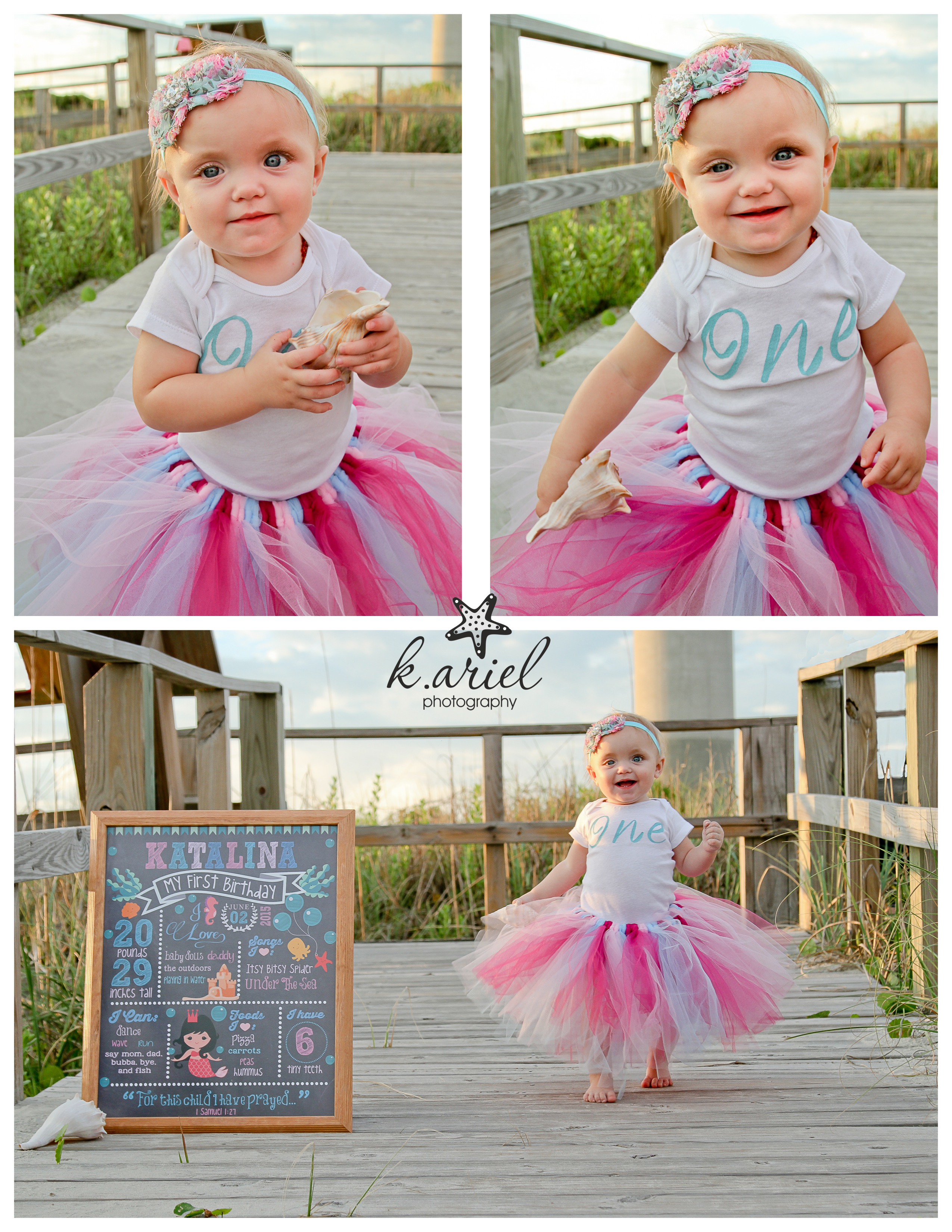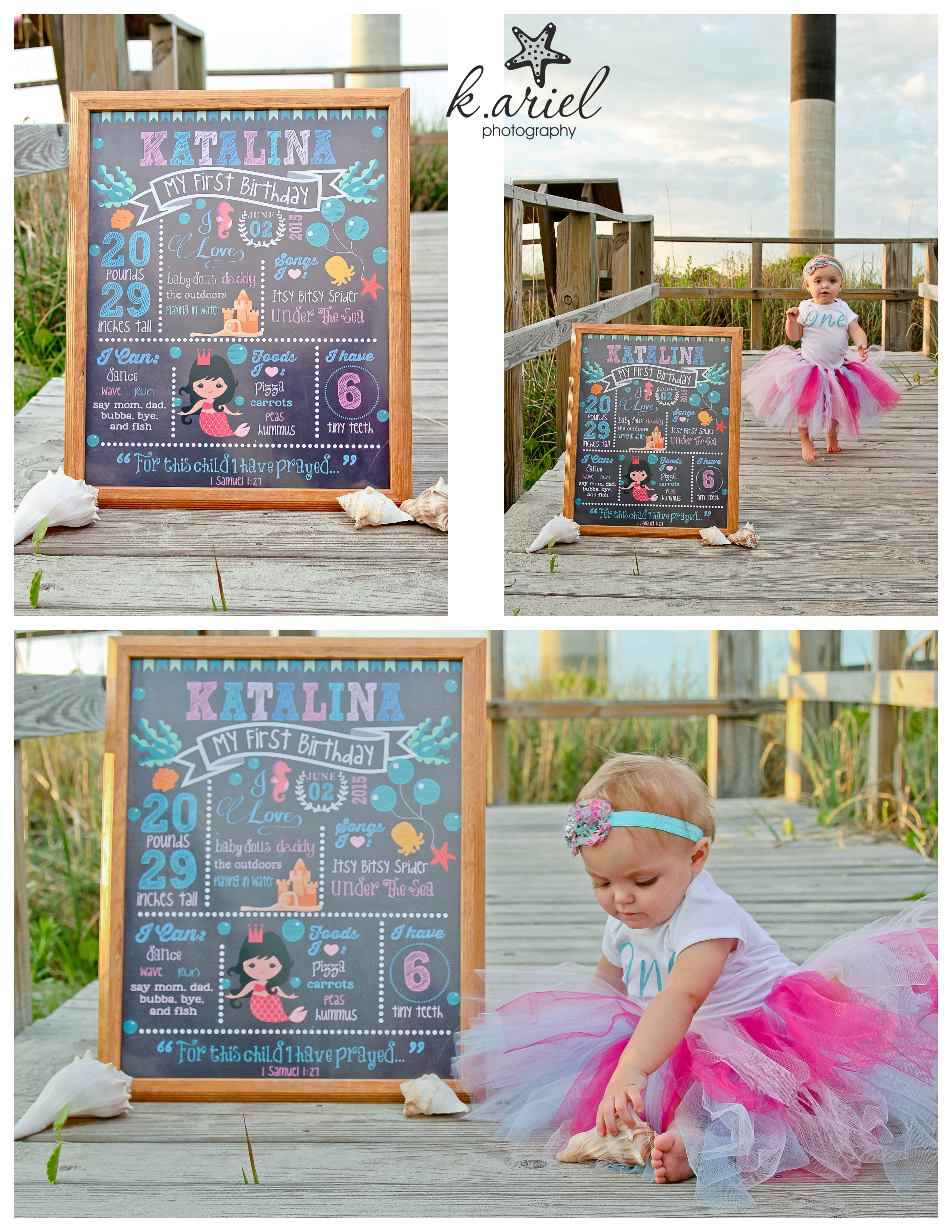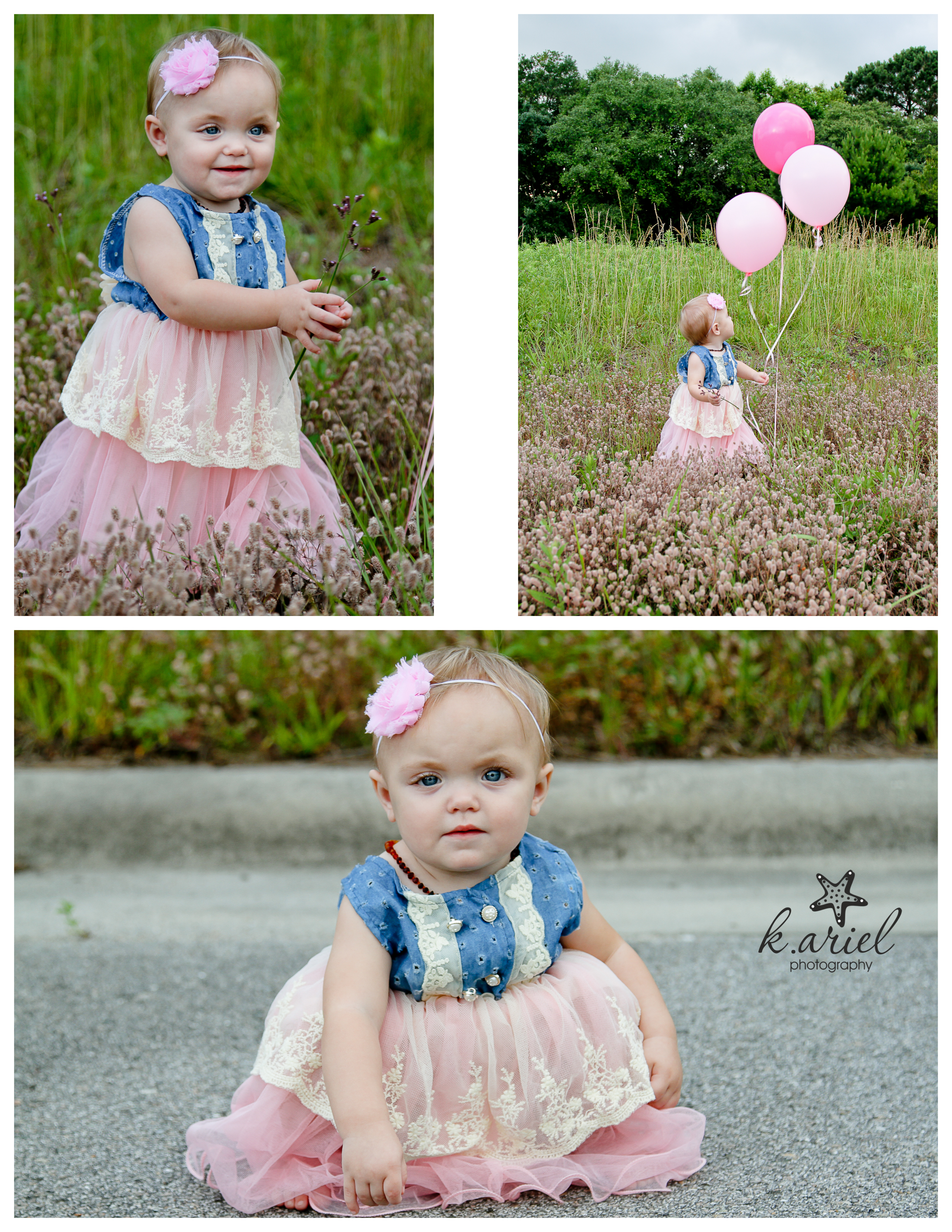 I may have been looking forward to this session almost as much as Katalina’s mom was! We talked about photo session locations, outfits and props for months beforehand. She would send me outfits from Etsy and I would send her pins for party decoration ideas on Pinterest. I basically have become a self-proclaimed aunt to this sweet little girl and I have enjoyed every aunt-duty during her first year! In fact, she is the first little one I have been able to photograph for all those fun 3-month increments that moms love to do! Here’s that little collage I put together: