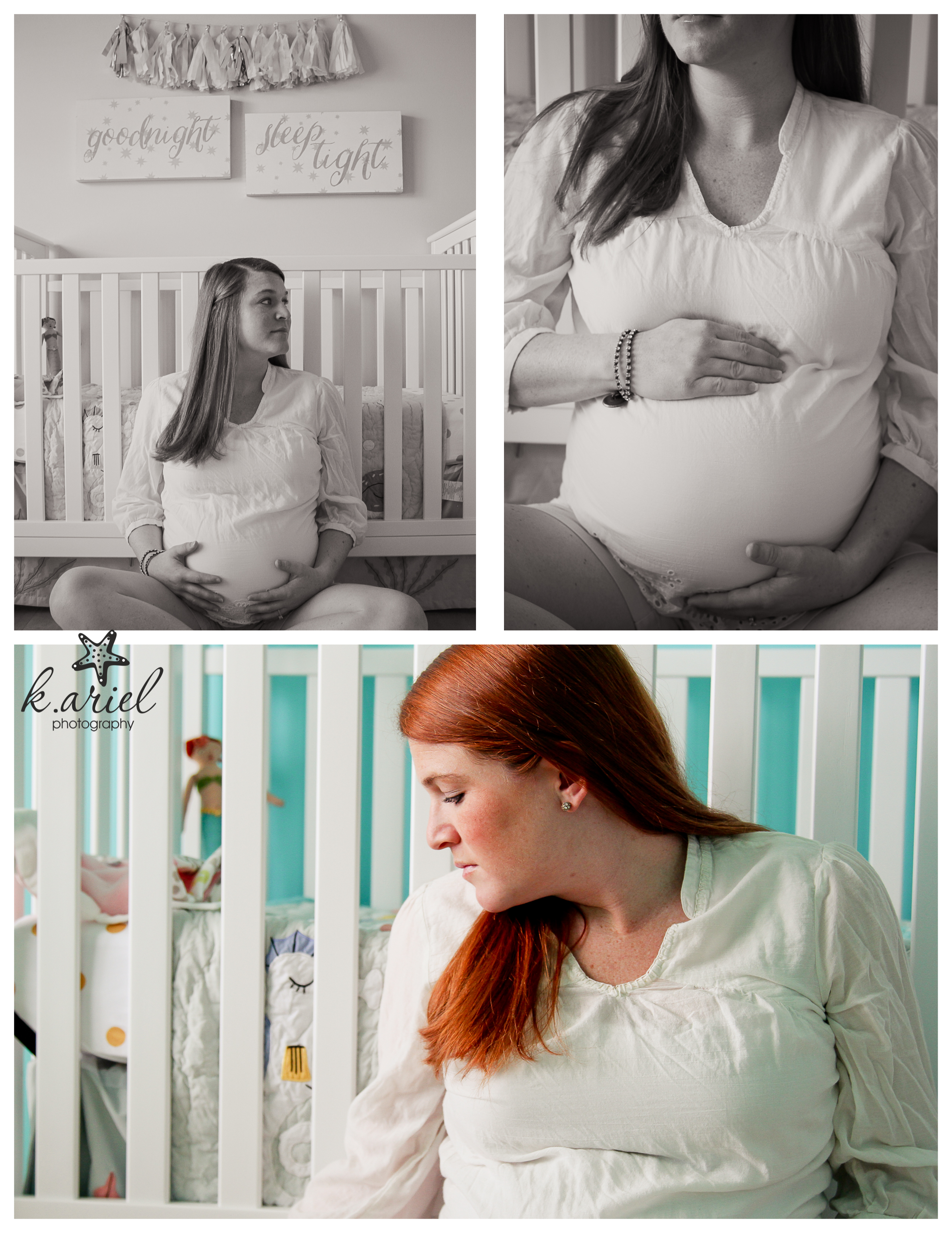 We took a lot of pictures inside her almost finished nursery, and oh my goodness, I fell in love! With items from Ikea and The Land of Nod, this room was, as I like to say, Pinterest-worthy! Has anyone else seen a mermaid-themed room before? Of course, Katie Mae coordinated so perfectly in that room with her gorgeous red hair! Check it out!