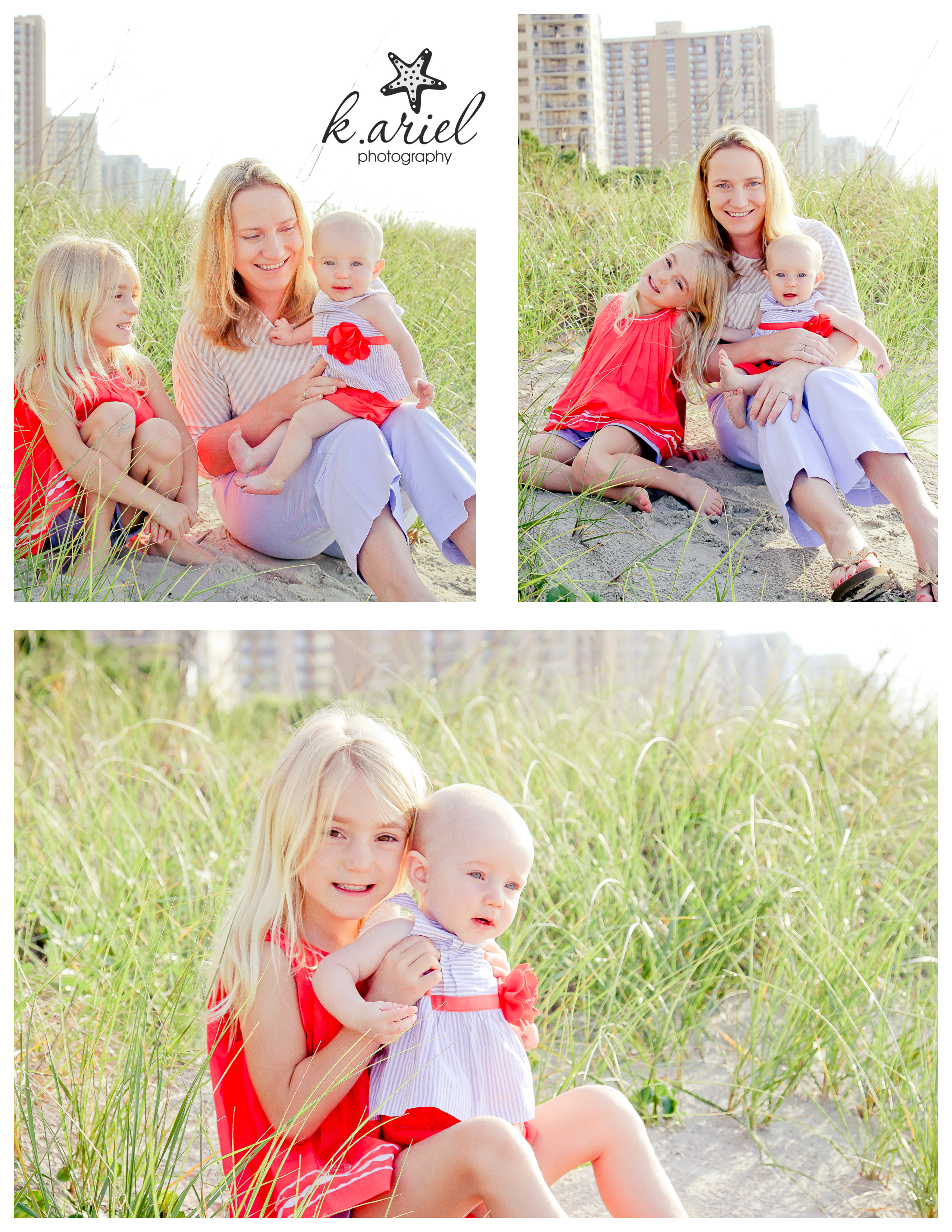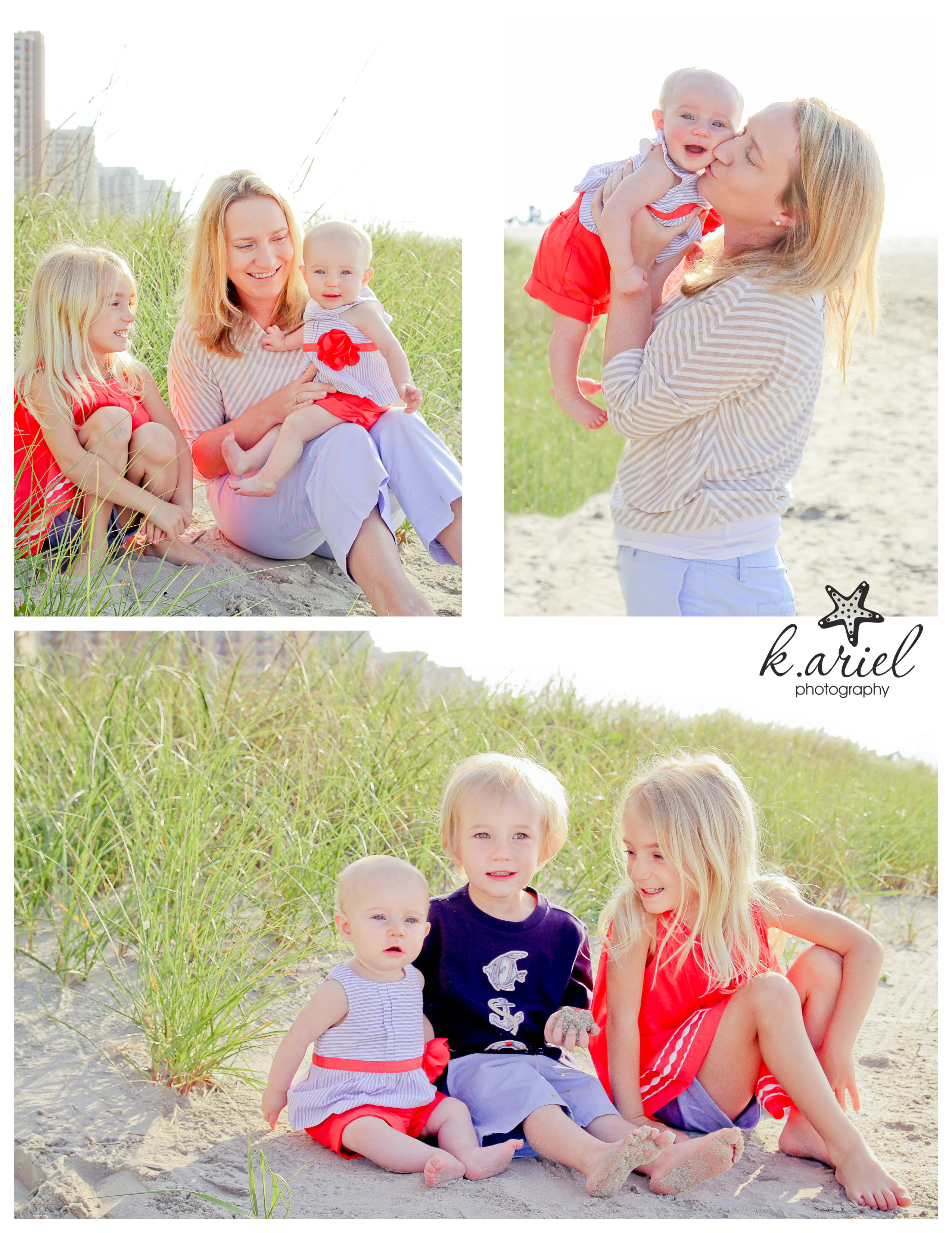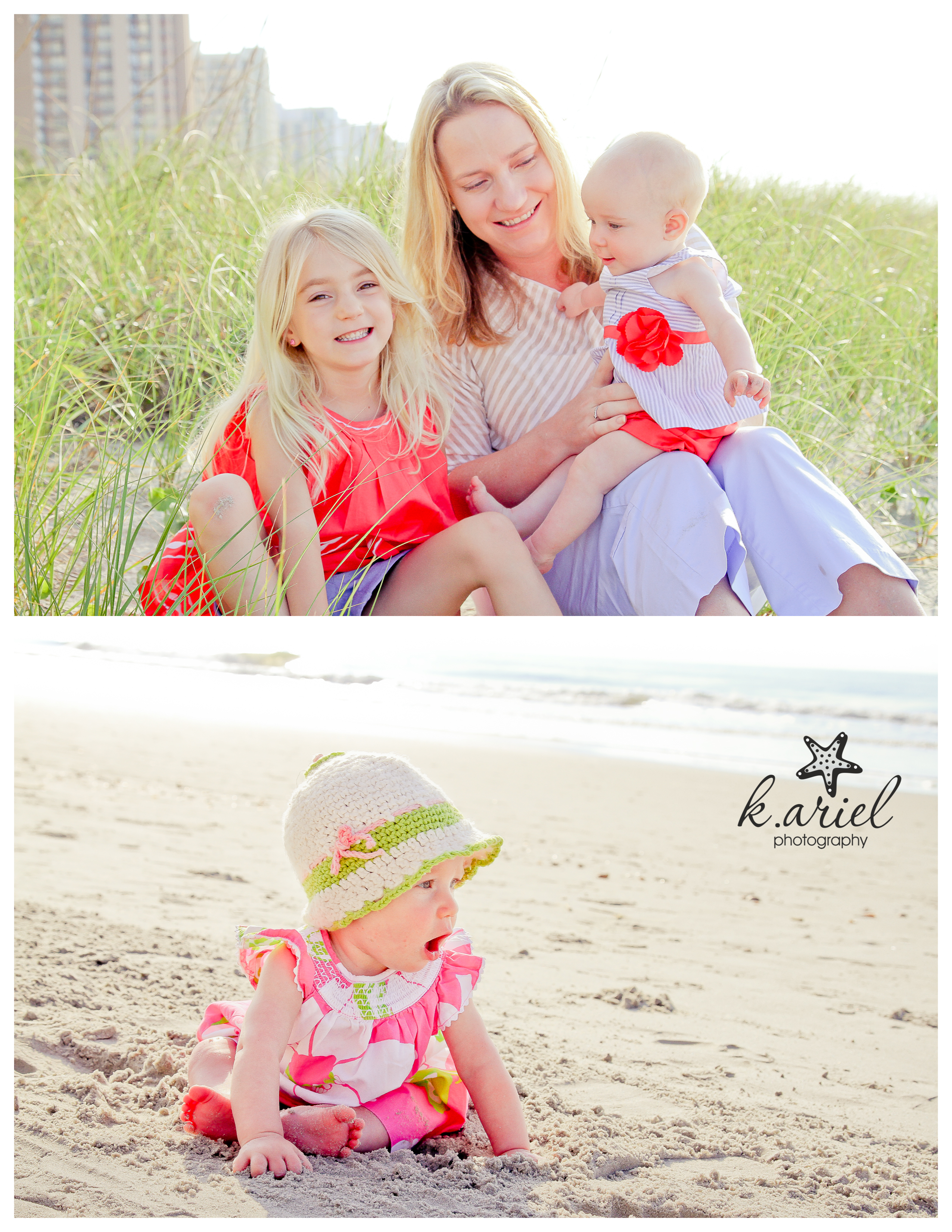 A few years ago before I moved to the area, the Morris family had just become a family of three. They visited Myrtle Beach and had some of the first family portraits taken of them and their baby girl, Caroline. Fast forward a few years and they came back as a family of five! Cammie wanted to re-create some of the pictures taken of Caroline with their second daughter Caswell. From being on the same stretch of beach to some of the same outfits that Caroline wore, Caswell had her first outdoor photo shoot to match her older sister! (The funny thing is, she looks like her brother Charlie when he was a baby!)