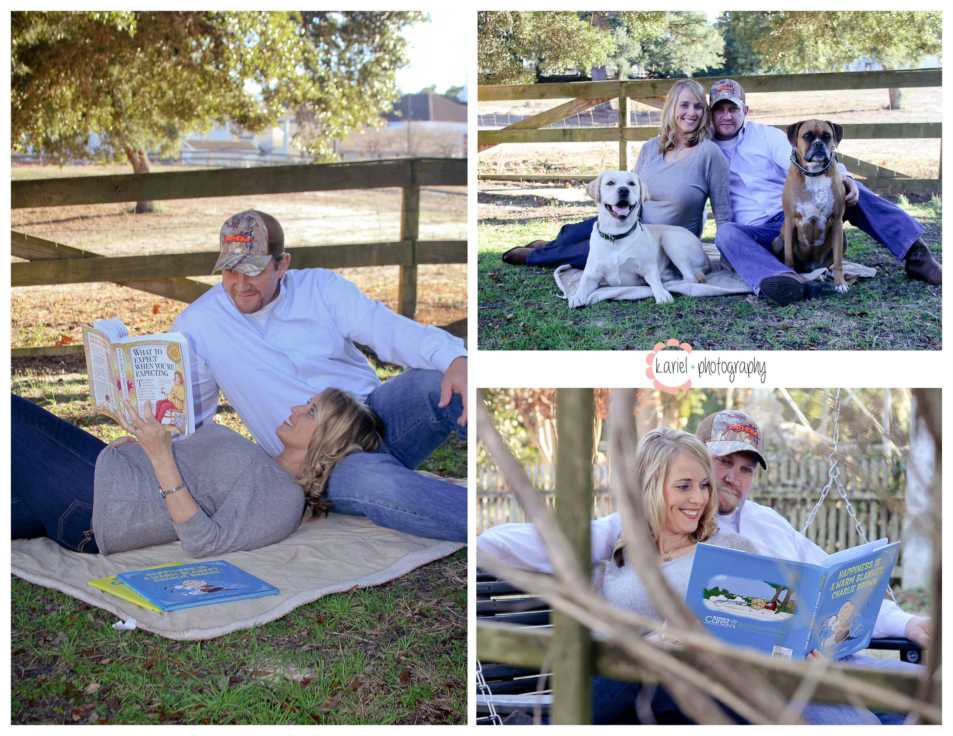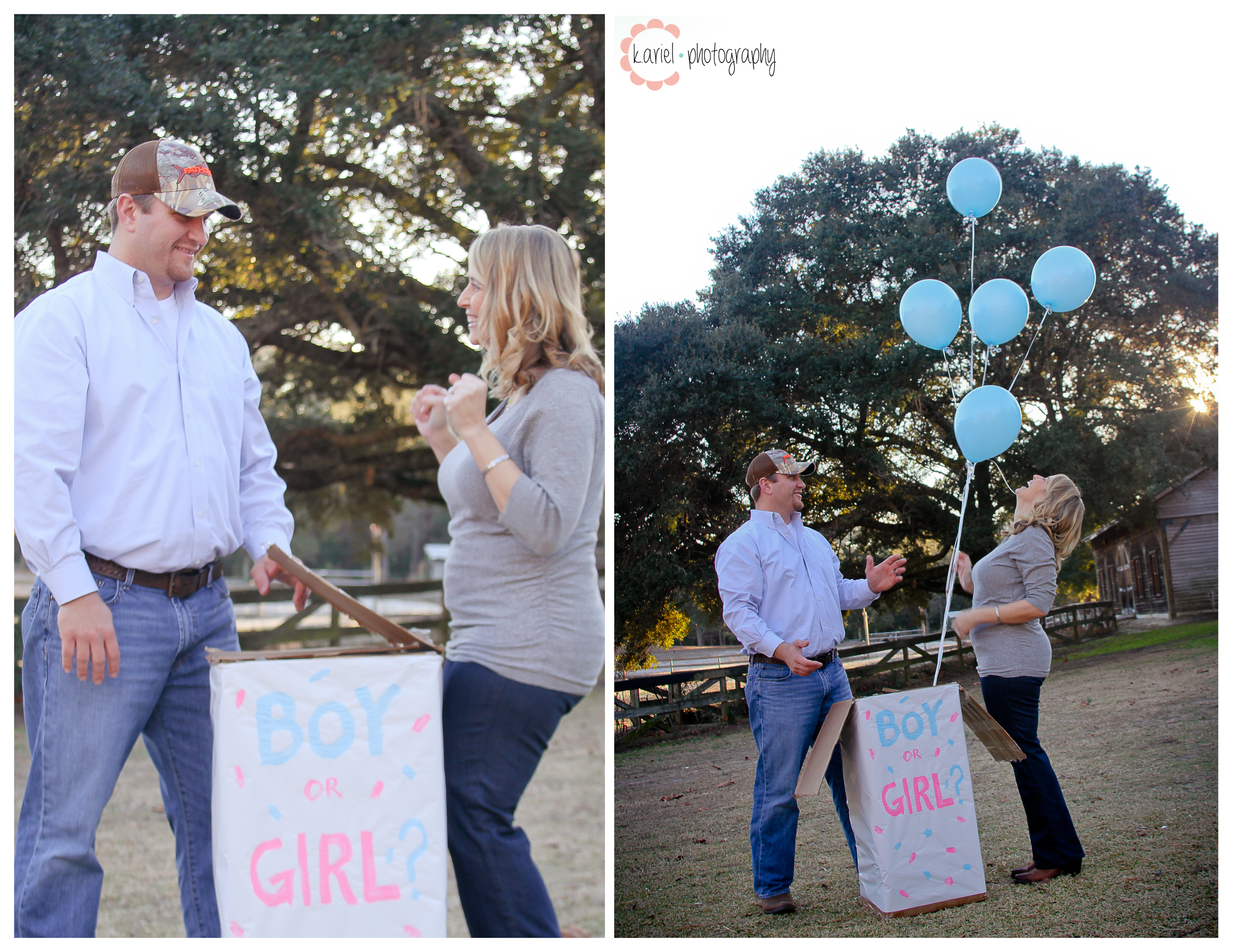 I know way too many people that are pregnant right now. There must be something in the water. All over the country. But as a photographer it got me really anxious to do a gender reveal photo shoot! Personally, I want to do one when I get that taste of the water and it’s our time for that. I just love the fact that I can be there to capture the raw, genuine emotions of finding out whether it’s a boy or a girl! It’s such a BIG moment in your life! So I met up with Amanda, her husband and their two oldest children; a yellow lab and a boxer, at Poplar Grove Plantation and we had a fun afternoon taking LOTS of different shots of announcing what they’re having! And in true country-boy fashion, her husband did not see the issue with keeping his camo trucker hat on! Enjoy! 🙂