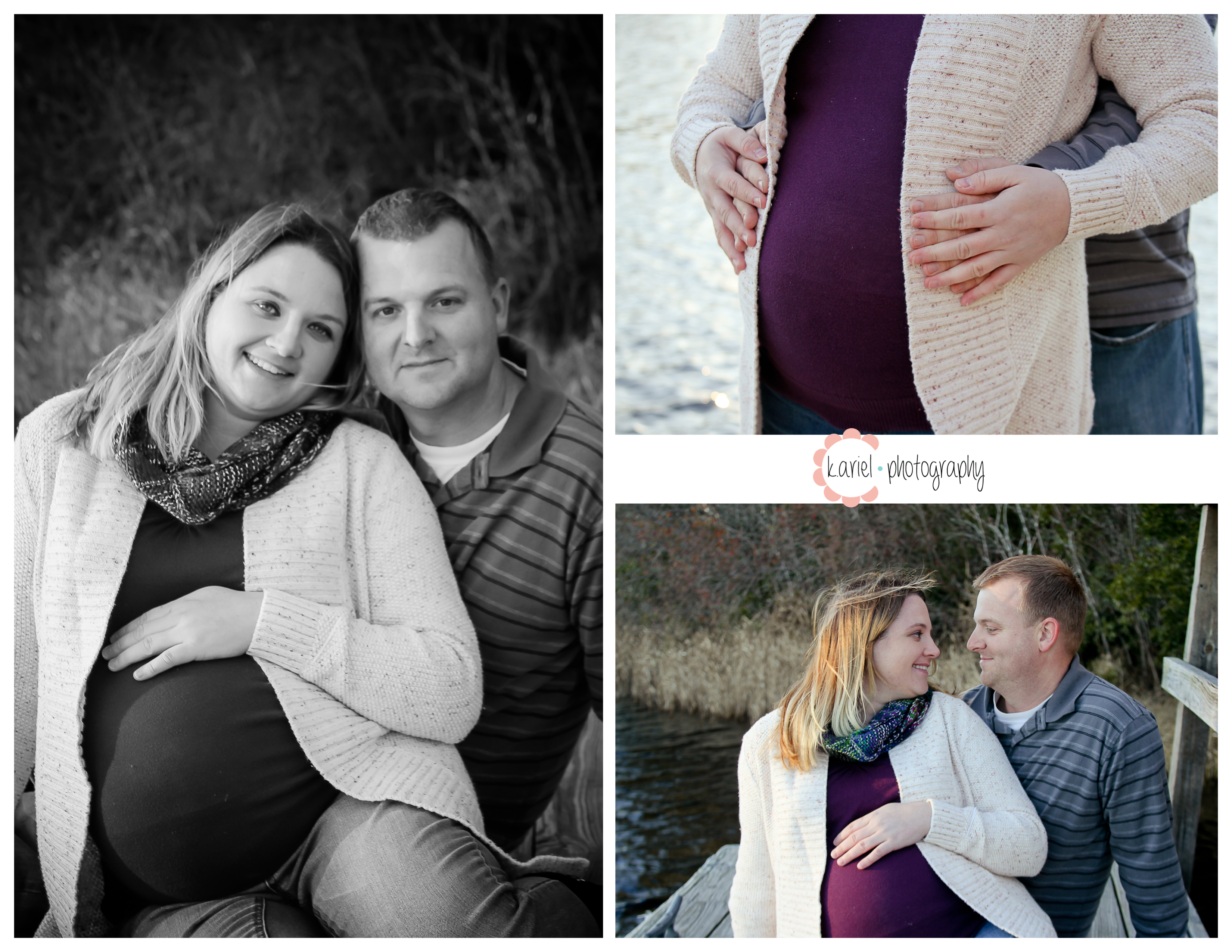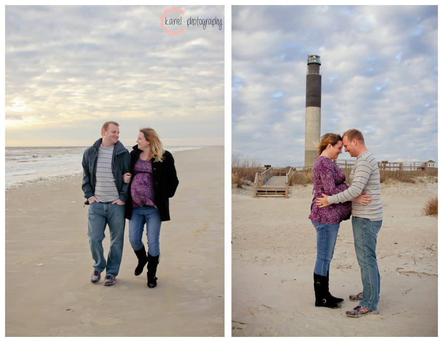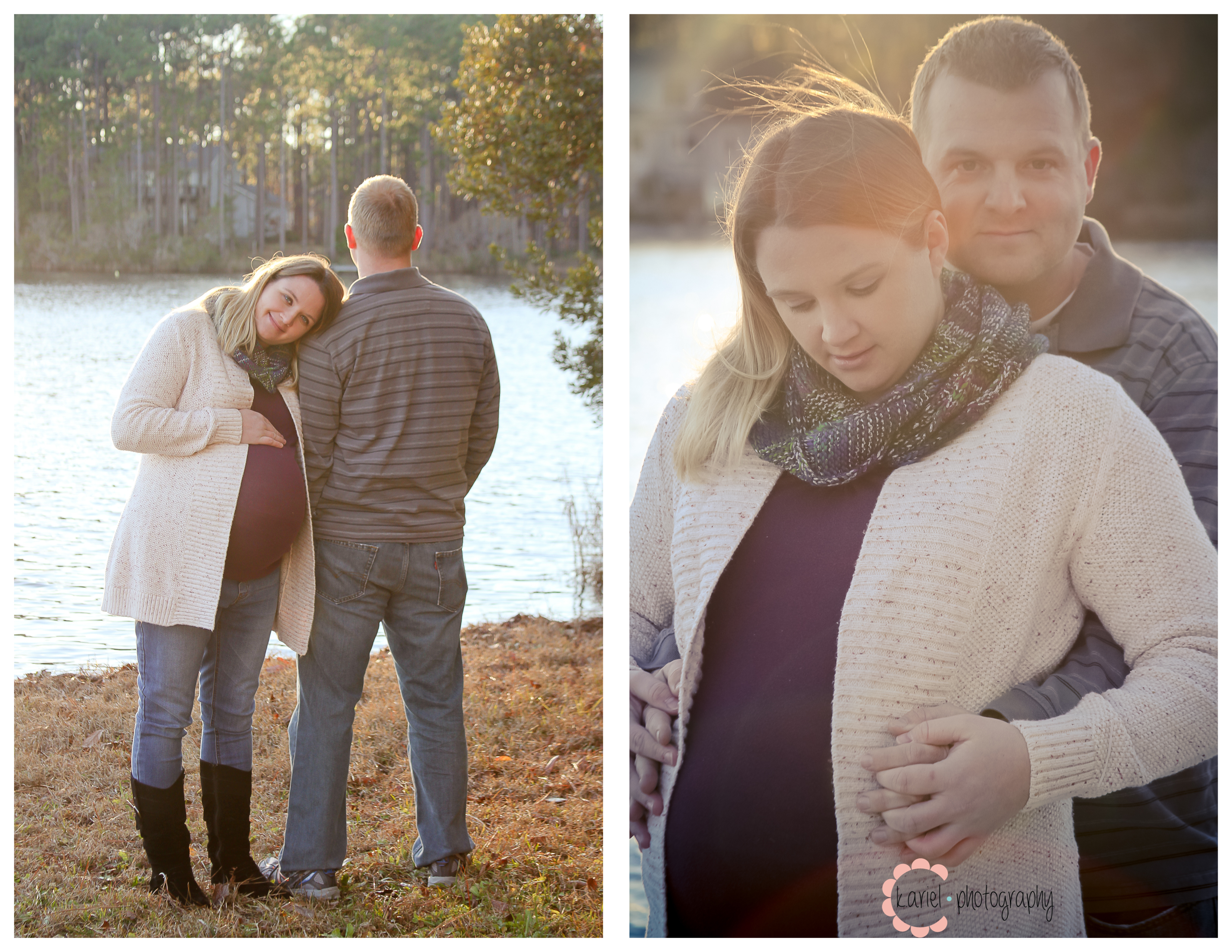 My latest session and newest Coastie family (to be), the Barfoots did their session when Sonja was TEN DAYS from her due date! I’ve photographed a couple at 36 weeks, but never within DAYS of their due date! We picked a date on a weekend that just happened to have some extreme weather coming but obviously we had no choice but to keep it to that weekend, just in case! The day started out nice and warm and just 15 minutes before the session I was outside in a t-shirt. By the time I drove to the beach, the weather had turned from warm and sunny to cloudy, windy, and FREEZING cold! None of us were prepared for this, not to mention the wind on the beach was a little insane. We snapped a few pictures anyways but decided to try again the next day. That Saturday turned out to be even colder but at least the sun was out, so we met at a non-beach location hoping that would help with the wind. Sonja and her husband Scott were troopers to work through the cold without jackets on or gloves! Lord knows my fingers were frozen and I had gloves!
